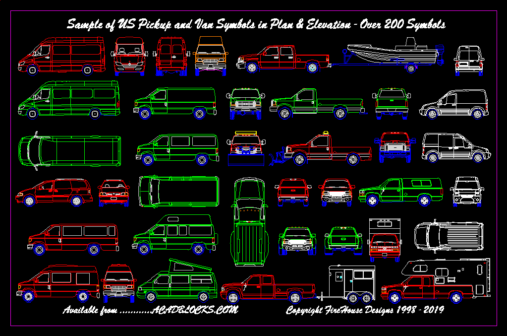 US PICKUP AND VAN BLOCKS OR CELLS - PLAN & ELEVATION