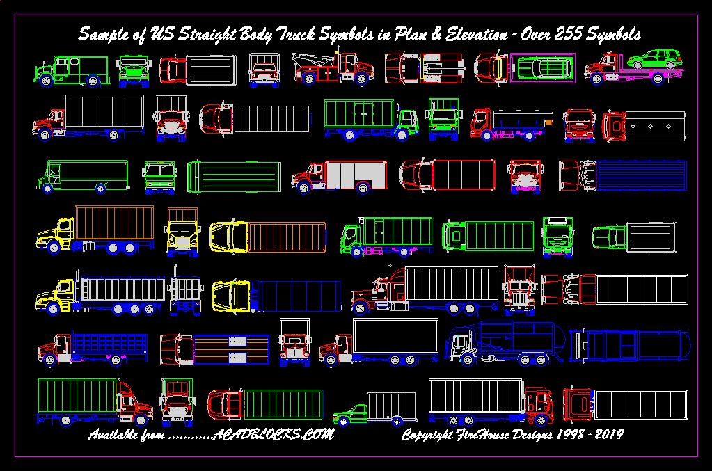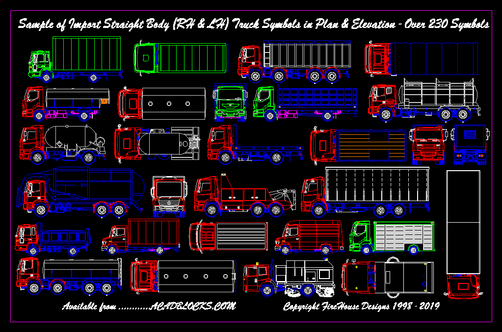 IMPORT STRAIGHT BODY TRUCK BLOCKS OR CELLS - PLAN & ELEVATION