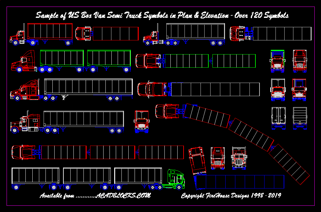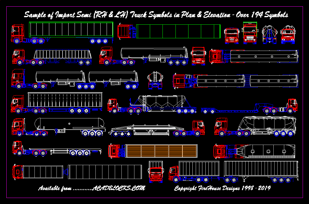 IMPORT SEMI TRUCK BLOCKS OR CELLS - PLAN & ELEVATION