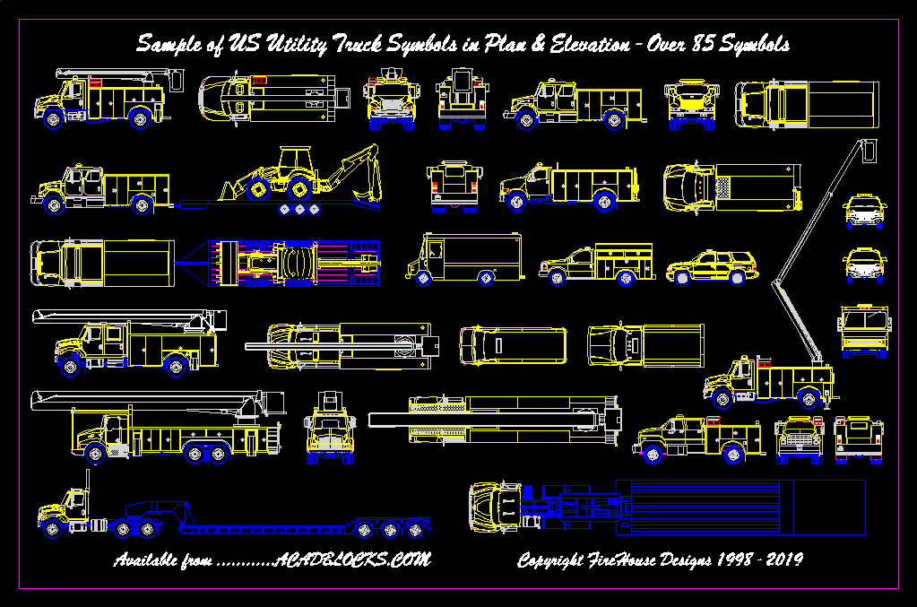 US UTILITY TRUCK BLOCKS OR CELLS - PLAN & ELEVATION