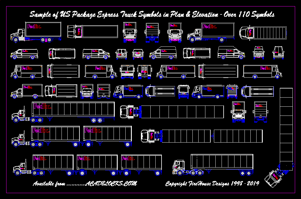 US PACKAGE EXPRESS (FEDEX) TRUCK BLOCKS OR CELLS - PLAN & ELEVATION