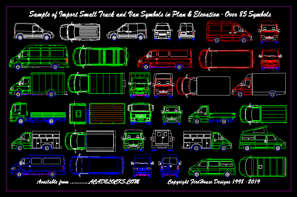 IMPORT SMALL TRUCK AND VAN BLOCKS OR CELLS - PLAN & ELEVATION