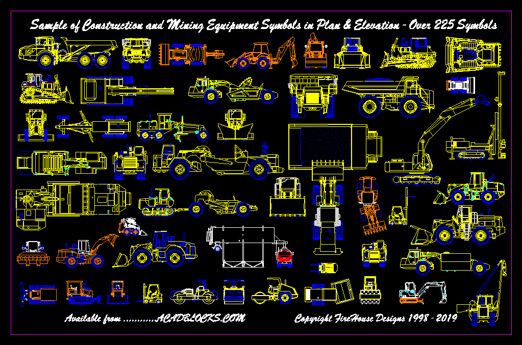 CONSTRUCTION AND MINING EQUIPMENT BLOCKS OR CELLS - PLAN & ELEVATION