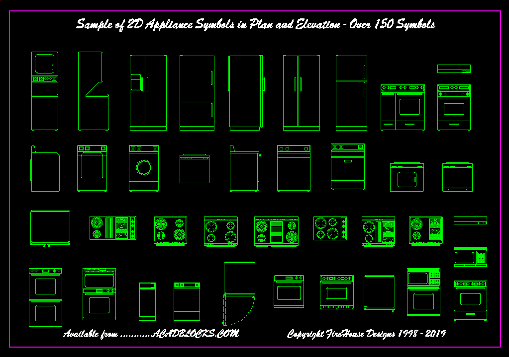 2D - APPLIANCE BLOCKS OR CELLS IN PLAN AND ELEVATION