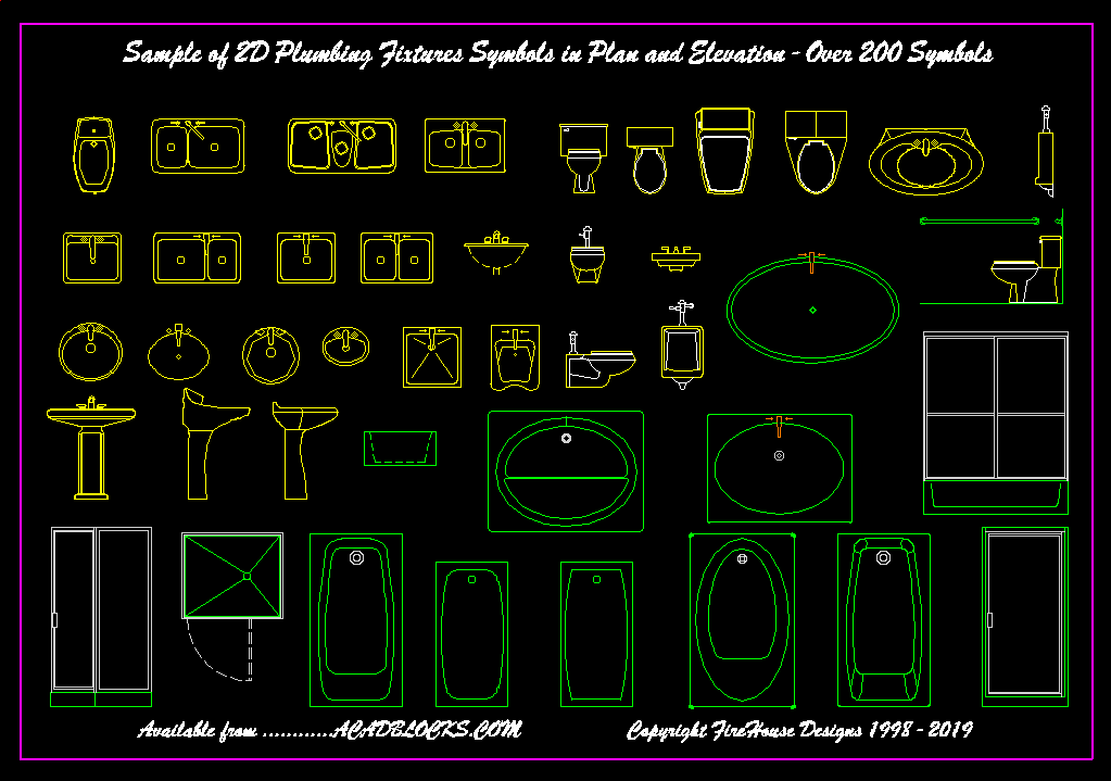 2D - PLUMBING FIXTURE BLOCKS OR CELLS IN PLAN & ELEVATION