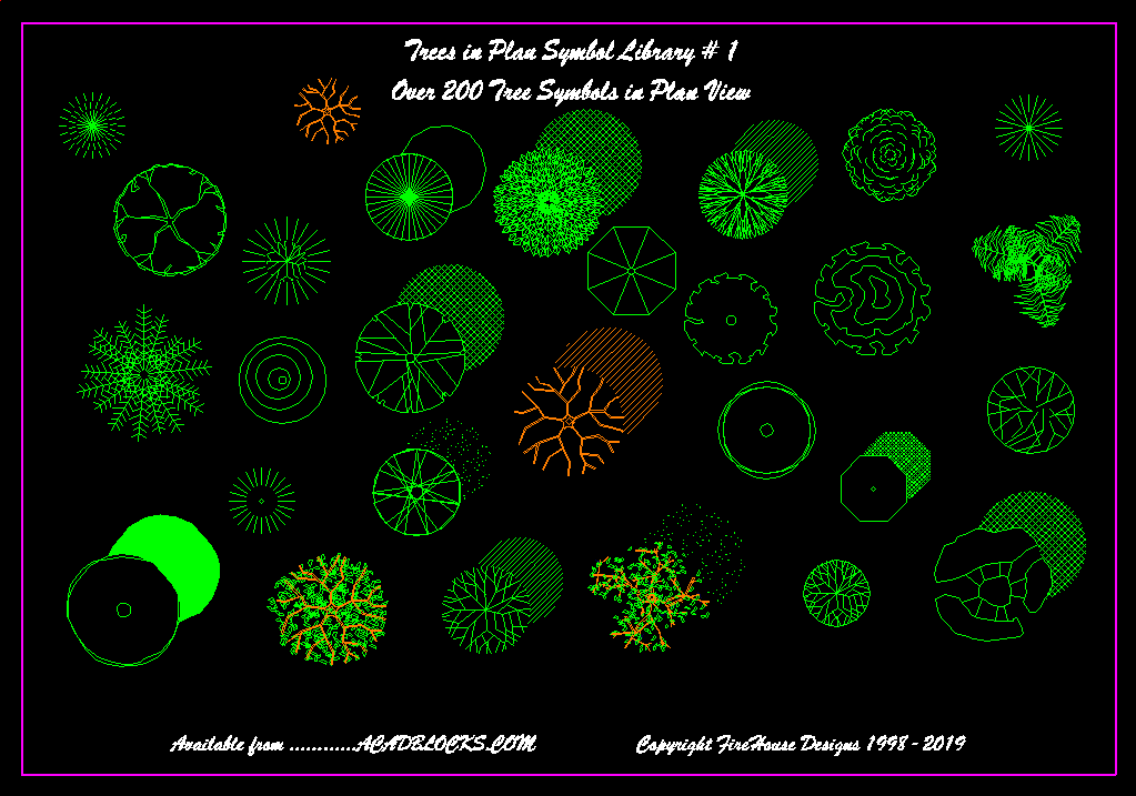 2D - TREE BLOCKS OR CELLS - PLAN VIEW LIBRARY # 1