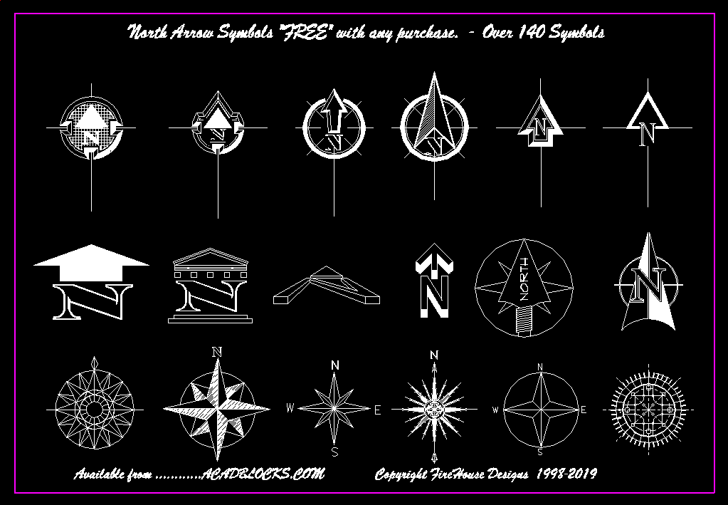 2D DISTINCTIVE NORTH ARROW BLOCKS OR CELLS
